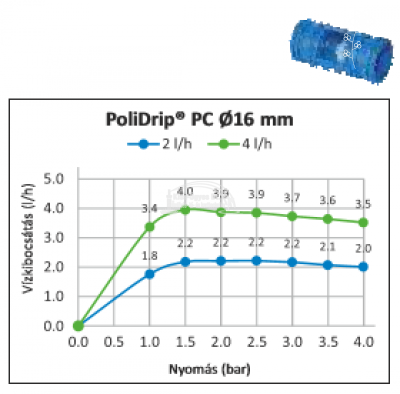 Polidrip nyomáskompenzált csepegtető cső 16/33cm, 2L/h 100-300 fm/tekercs, ár/fm