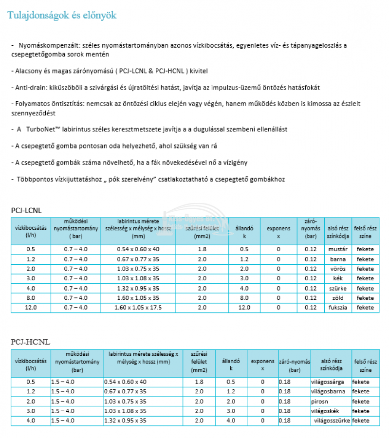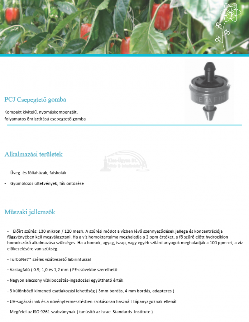 Netafim PCJ LCNL nyomáskompenzált, cseppmentes, öntisztító gomba, 4L/h, 0,7-4 bar szürke