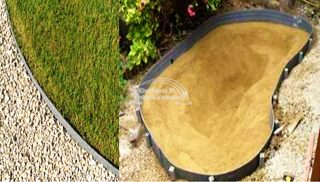 Tó és ágyásszegély, műanyag, szürke, síma, hajlékony, 5mm x 14cm x 25fm, tekercsben Alkalmas tóperem, ágyásszegély kialakítására és különféle kerti építőanyagok elválasztására, struktúrálására. A tekercs hosszúsága lehetővé teszi a nagy szakaszokon végigfutó törésmentes vonalakat, tetszés szerint kialakítható íveket.