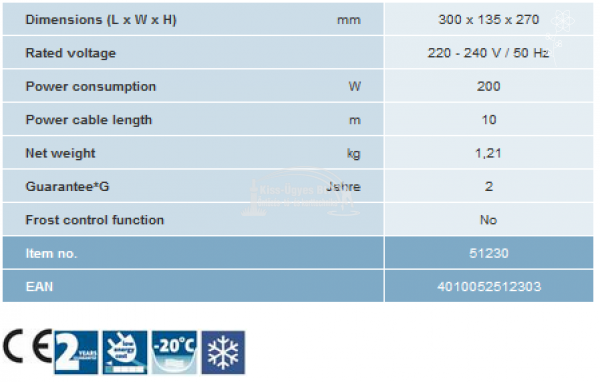 Oase IceFree Thermo 200 befagyásgátló fűtőkészülék, 200W, - 20 fokig hatékony. Megőrzi a mélyebb vízrétegek magasabb hőmérsékletét, ez által főképp kisebb tavaknál fontos, hogy segítse a halak áttelelését. Meggátolja a vízfelszín teljes befagyását, így oxigénhez juttatja a tavat és idősebb tavaknál elősegíti az esetlegesen felszabaduló káros iszapgázok eltávozását a jég alól, elkerülve ezáltal a halak és vízi élőlények pusztulását.