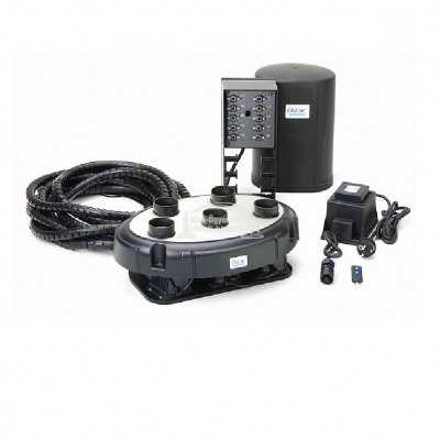 Oase Water Quintet szökőkút szett, színes led világítással. Csatlakoztatásra kész komplett szett. A szett tartalma: 5 db vízsugaras fúvóka világítással, 5 db szivattyú, külső vezérlőegység, távirányító, transzformátor és kábel. A programok, fehér fény és a vízkép látvány elemei is kényelmesen beállíthatók a távirányítóval. A távirányító hatástávolsága legfeljebb 80 m. A vízkép maximális magassága 0,3-1,4 m, képe tetszőlegesen beállítható. Robusztus padlólap véd a sérülésektől. Biztonságos, energiatakarékos 12 V technológia, úszótavakban is alkalmazható. Időzítőhöz is csatlakoztatható.