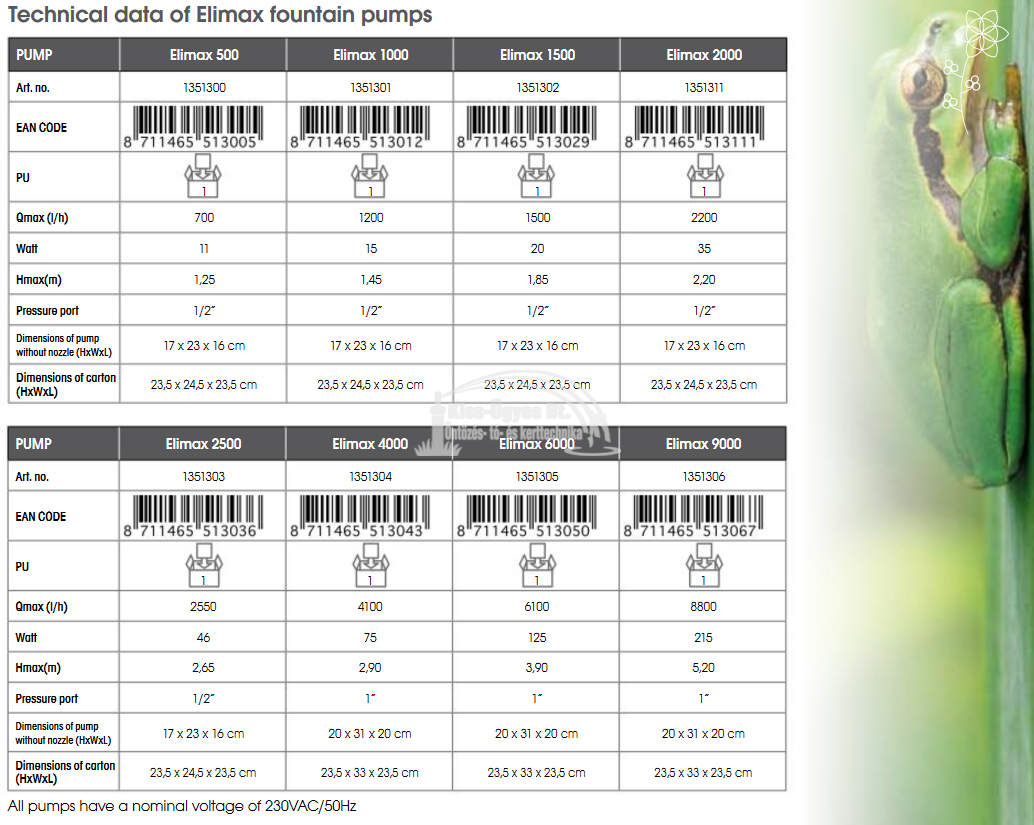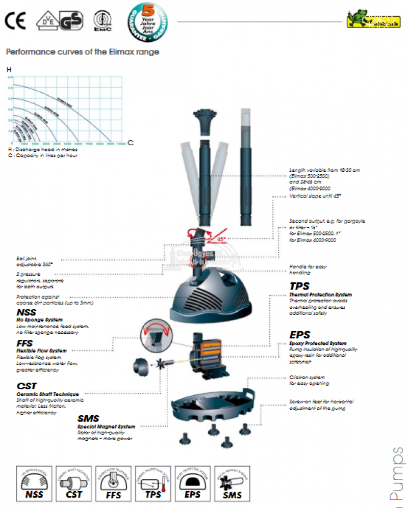 Ubbink Elimax 6000 szökőkút és szűrőtápláló szivattyú, 6100L/h, 3 db fúvókával ( 5 év garancia)