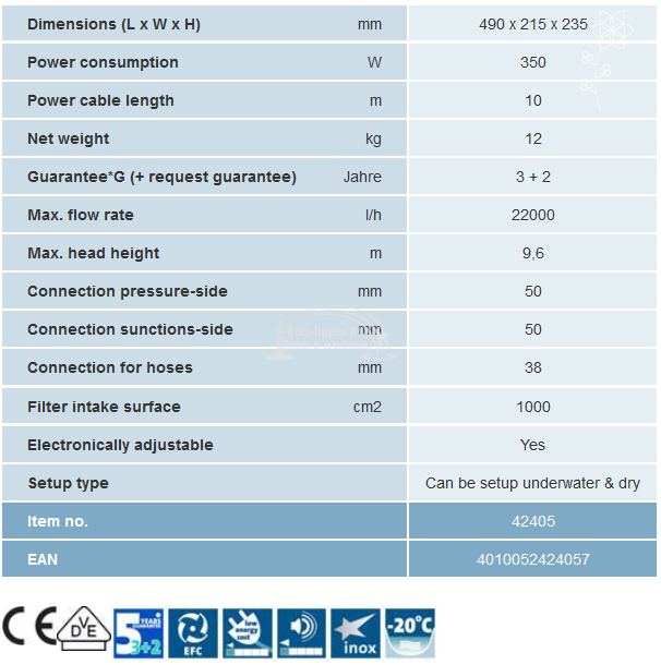 Oase Aquarius Eco Expert 22000 vízesés és szökőkút szivattyú, fordulatszabályzási lehetőséggel, SFC és okos DMX-RDM lehetőség, 22.000L/h