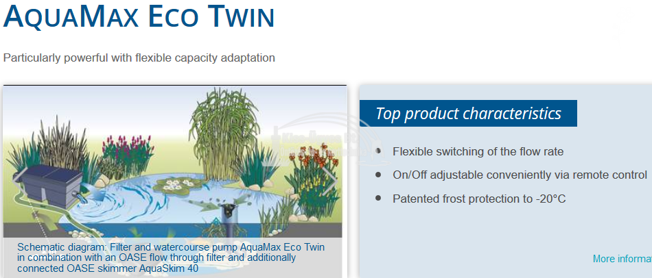 Oase AquaMax Eco Twin 20000 szűrőtápláló és patak szivattyú, 2 motorral, telj.szabályzó távir.adapterrel , 2 szívócsonkkal, 20.000L/h