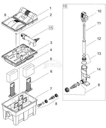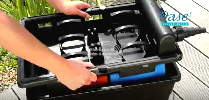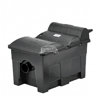 Oase BioSmart UVC 16000 átfolyós szűrő, 11W UVC készülékkel, vízhőmérővel, vízszint kijelzővel, oxigénnel dúsító speciális csatornával, csatlakozókkal, maximális áteresztő képesség 5.500L/h. Halasítás nélkül 16.000L-es, halasítva ~ 9-10.000L-es tavakig ajánlott, halmennyiség függvényében. UV-C blokk lebegő algák ellen, szűrő filterek a fizikai szennyeződések ellen és a biológiai szűréshez.