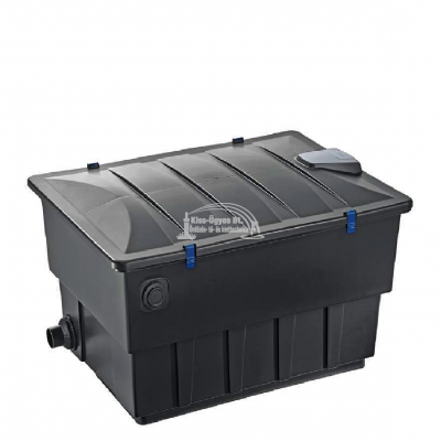 Oase BioTec ScreenMatic2 60000, átfolyós szűrő. Átfolyós vagy más néven gravitációs szűrő, csatlakozók, minimum átfolyásigény 6.000L/h, maximális átfolyás 11.000L/h. Optimálisan kombinálható a Bitron Eco 120 - 240 W, Bitron C 36 - 110 W UV-C algaleválasztó előszűrőkkel. A szűrő minden egysége prémium minőségű. A Screenmatic tecnológia rendkívül nagy mértékben növeli a szűrő kapacitását, illetve megnöveli a tisztítási időközöket. Ez azon alapul, hogy a durva szennyeződéseket a szűrő egy szita segítségével egy tálcára gyűjti, ez által növelve a szűrőszivacsok befogadó kapacitását. Halasítás nélkül 60.000L-ig, halasítva 30-35.000L-ig halmennyiség függvényében, koi-k esetén 15.000L-ig ajánlott. UV-C blokk lebegő algák ellen, szűrő filterek a fizikai szennyeződések ellen, lávakő a biológiai szűréshez.