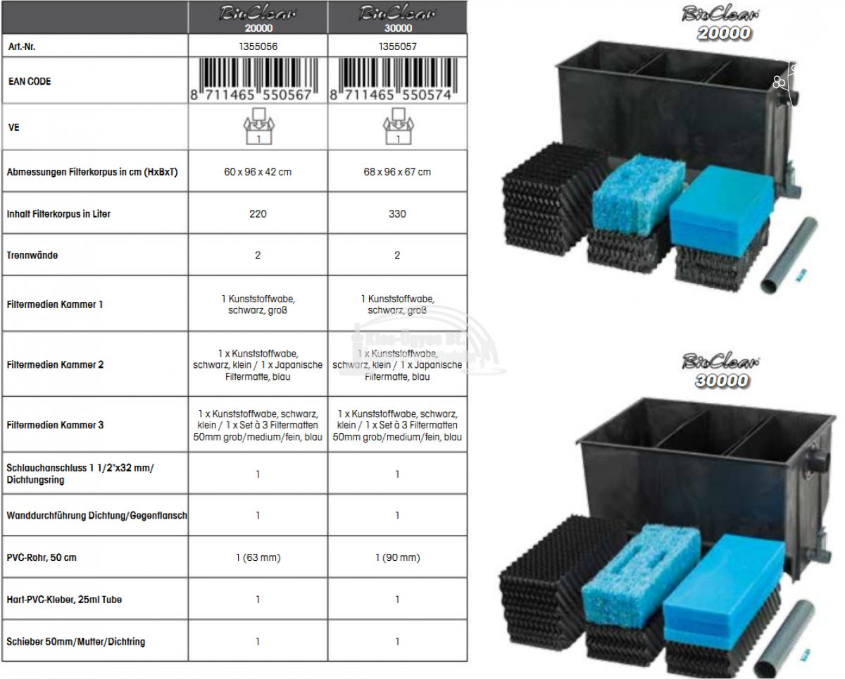 Ubbink BioClear 30000, 3 kamrás átfolyós szűrő, maximum 30 m3-es halasítás nélküli és 19 m3 halasított tavakig ajánlott.