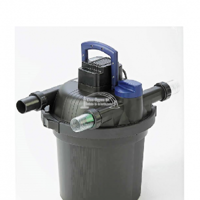 Oase FiltoClear 13000 nyomásszűrő, beépített 18W UV-C készülékkel, csatlakozókkal. Maximális áteresztő képesség 8.000L/h. A megtisztított vizet 1-1,5 m-es magasságig lehet felvezetni patak üzemeltetéséhez. Halasítás nélkül 12.000L-ig, halasítva 6-7.000L-ig a halmenyiség függvényében ajánlott. A szűrő tetején kivezetett kar segítségével szétszerelés nélkül könnyedén elvégezhető egy gyorstisztítás. A szennyezett víz kivezetésére külön kimenet szolgál, mely egy irányváltó csap segítségével könnyedén üzembe helyezhető. UV-C blokk lebegő algák ellen, szűrő filterek a fizikai szennyeződések ellen, a biológiai szűrést a nitrifikáló baktériumok megtelepedését segítő műanyag labdacsok fokozzák. A szűrőház ~ 2/3-ig talajba temethető. Opcióként külön megvásárolható hozzá egy kő hatású fedőburkolat.
