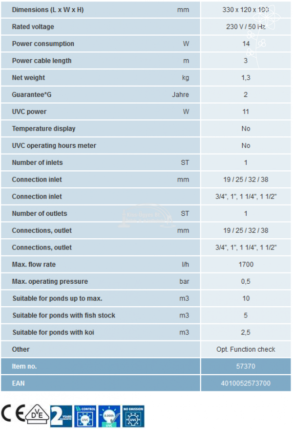 Oase Vitronic 11 W, UV-C algaleválasztó előszűrő ( 2 év garancia )