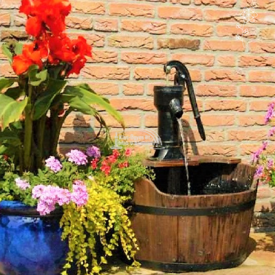 Ubbink Newcastle dekorációs szett, norton kút fa dézsával, melyben van egy műanyag vízgyűjtő tartály, 350L/h szivattyú. Méretek: dézsa átmérője 60 cm, teljes magasság 75 cm.