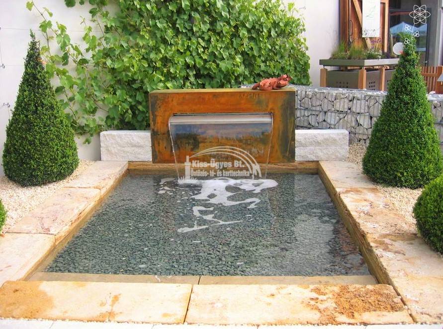 Ubbink Niagara 90 vízeséselem, 90 cm széles, anyaga inox. 1" -os belsőmenetes bekötési lehetőség a tartály alján és hátulján. A méretezést a lentebbi ábrán találja. Ezen felül néhány ötlet képekben az alkalmazáshoz.